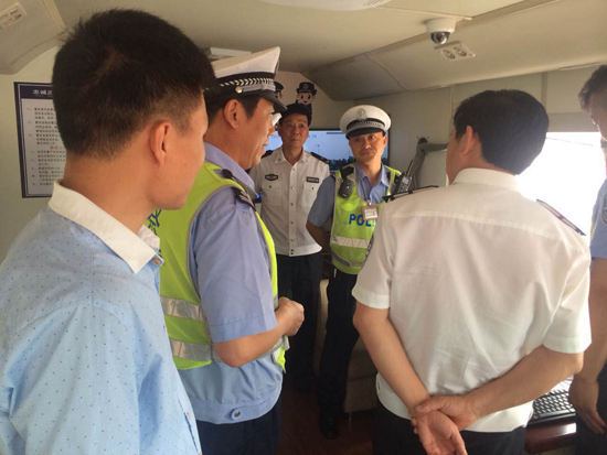 河南省公安廳黨委委員、副廳長(zhǎng)吳忠華在豫冀交界處京港澳高速路口參觀體驗(yàn)8米移動(dòng)工作站