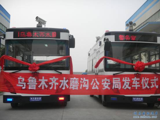 8月9,繼新疆省焉耆縣公安局,博湖縣公安局,喀什市公安局,喀什市伽師縣公安局流動(dòng)警務(wù)室發(fā)車(chē)儀式之后,在森源鴻馬電動(dòng)汽車(chē)研發(fā)中心的廣場(chǎng)內(nèi)舉行了發(fā)往新疆省烏魯木齊市水磨溝區(qū)流動(dòng)警務(wù)室的發(fā)成儀式。