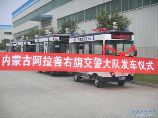 8月12日,一個別致的小型流動警務(wù)室停放在森源鴻馬電動汽車研發(fā)中心的廣場內(nèi),即將等待它的是到內(nèi)蒙古阿拉善右旗市交警隊執(zhí)勤任務(wù)。這是繼內(nèi)蒙古烏海市海勃灣區(qū)公安局,喀喇沁旗公安局,霍林郭勒市公安局流動警務(wù)室發(fā)車儀式之后舉行的儀式。