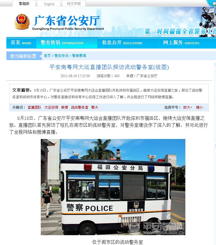 廣東公安廳網(wǎng)報(bào)道:大運(yùn)會(huì)直播團(tuán)隊(duì)探訪鴻馬流動(dòng)警務(wù)室(組圖)