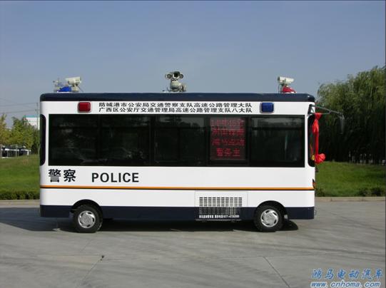 10月15日,廣西省防城港市高速公路流動警務(wù)室發(fā)車儀式在鴻馬電動汽車廣場舉行。一臺高端配置鴻馬高速公路流動警務(wù)室準(zhǔn)備發(fā)往防城港公安局高速交通警察支隊(duì)高速公路管理大隊(duì)。廣西防城港市率先開展高速公路移動巡邏機(jī)制改革,有警見警、無警移動巡邏,開展流動巡邏整治活動。
