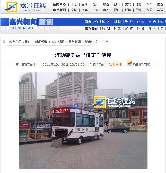 嘉興在線報(bào)道:鴻馬流動(dòng)警務(wù)站“值班”便民