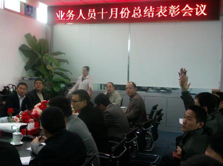 10月31日,河南鴻馬電動汽車有限公司舉行業(yè)務員10月份總結(jié)表彰會議。公司總經(jīng)理馬鴻軍、全體業(yè)務人員集聚一堂,意在總結(jié)、提高,并且周密部署下階段更加卓有成效的市場沖鋒。此次的會議最重要的是要力爭解決一些困擾銷售工作的重要問題,統(tǒng)一思想,群策群力、集思廣益,共同研究制定有效的市場戰(zhàn)略。