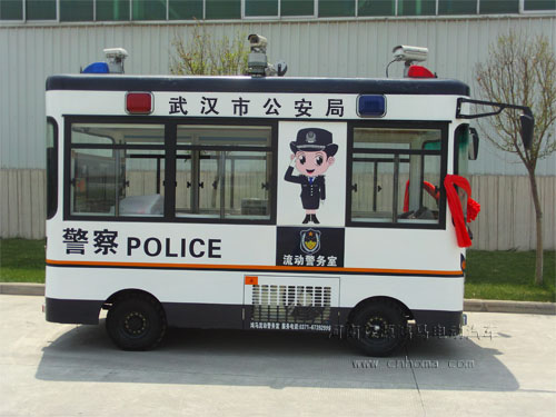 “武漢公安局流動警務卡口室”為民警提供良好工作環(huán)境,提高工作效率,落實從優(yōu)待警工作。武漢流動警務卡口室長4.2米,藍白相間,線條流暢,烤漆工藝。由鴻馬電動汽車整車生產(chǎn)而成,頂部有監(jiān)控錄像器、車內卡口系統(tǒng)備有醫(yī)藥箱、筆墨紙張等便民用品,電臺、便攜式電腦、警棍等通訊設備和防護警械也一應俱全。