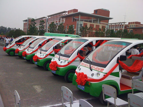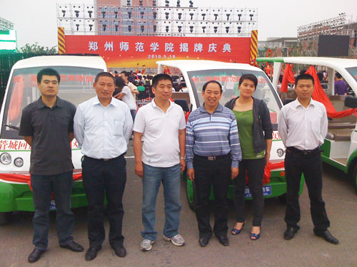 河南管城區(qū)區(qū)委區(qū)政府也攜手河南森源鴻馬電動汽車有限公司負責人參加了這次揭牌儀式,他們?yōu)猷嵵輲煼秾W院帶來了6臺電動巡邏車,該車采用了新能源發(fā)動,綠色環(huán)保無污染無噪音,為寧靜的校園增添一份美麗的同時也帶給了同學極大的方便。