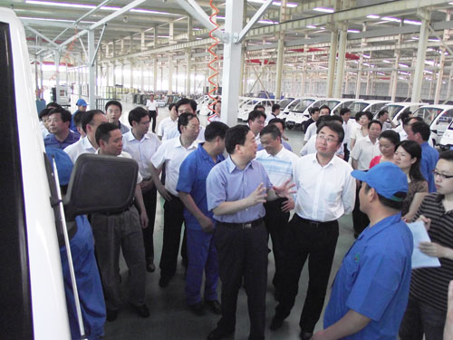 李克、許繼超一行首先認(rèn)真聽取了公司董事長楚金甫關(guān)于項目建設(shè)情況和公司發(fā)展規(guī)劃的匯報。之后,李克一行饒有興趣地乘坐公司電動觀光車對公司項目建設(shè)工地的項目質(zhì)量和工程進(jìn)度進(jìn)行了實地考察,對項目建設(shè)組織管理狀況和施工進(jìn)度表示滿意。接著,李克一行又來到電動車生產(chǎn)車間實地觀摩了公司電動車生產(chǎn)、組裝流程,詳細(xì)了解了電動車生產(chǎn)銷售和市場運(yùn)營情況。值得一提的是,在公司董事長楚金甫的引導(dǎo)下,李克躬身坐上一款18座新能源純電動城鄉(xiāng)巴士親身體驗了電動汽車的穩(wěn)定性、可靠性后,不住的地點(diǎn)頭稱贊。