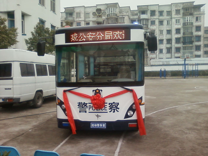 襄陽流動警務(wù)室由鴻馬電動汽車公司生產(chǎn)的流動警務(wù)站,與傳統(tǒng)的崗?fù)ぷ畲蟮膮^(qū)別就是不僅能夠?qū)崿F(xiàn)移動執(zhí)勤,同時(shí)車上所裝載的3G傳輸系統(tǒng)和視頻回傳系統(tǒng)能夠把所掌握的信息進(jìn)行及時(shí)有效的處理。