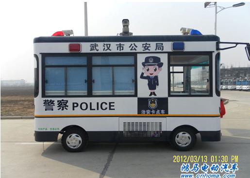 2012年2月13日下午,在河南森源鴻馬電動汽車公司長葛生產基地舉行湖北武漢市移動警務室發(fā)車儀式。