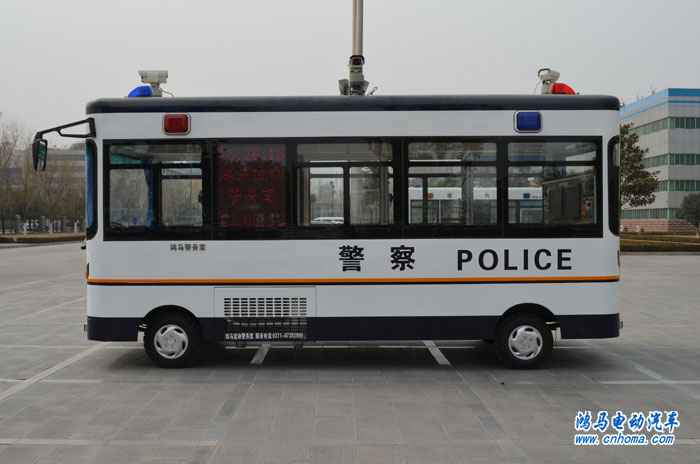 警用便民移動(dòng)警務(wù)室是鴻馬電動(dòng)汽車公司為了更好服務(wù)群眾,協(xié)助警務(wù)人員處置突發(fā)性事件現(xiàn)場(chǎng)指揮、掌控地區(qū)治安形勢(shì)、打擊違法犯罪活動(dòng)、進(jìn)行法制宣傳、安全防范知識(shí)宣傳的一款多功能電動(dòng)流動(dòng)警務(wù)室。