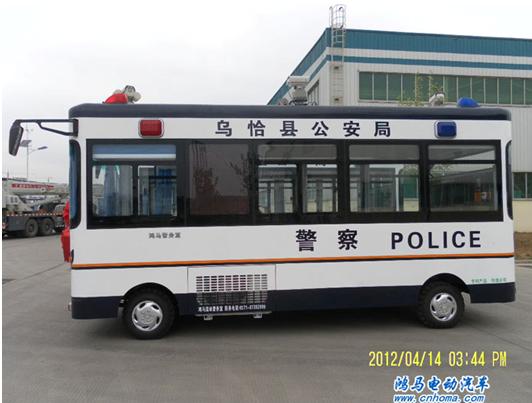 2012年4月14日下午,在河南森源鴻馬電動汽車公司長葛生產(chǎn)基地舉行新疆烏恰縣公安局警用便民移動警務(wù)室發(fā)車儀式。