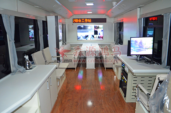 鴻馬SYH6800GZZ型移動(dòng)警務(wù)方艙,是在傳統(tǒng)警務(wù)方艙的基礎(chǔ)上,進(jìn)行升級(jí)而來的新一代移動(dòng)警務(wù)裝備,底盤采用豪華客車底盤,舒適性與機(jī)動(dòng)性遠(yuǎn)高于傳統(tǒng)警務(wù)方艙使用的卡車底盤,其內(nèi)部高度2.15米、寬度2.5米、長(zhǎng)度8米,內(nèi)部具備會(huì)議室、辦公區(qū)、接待區(qū)、全民服務(wù)區(qū),還可滿足6人休息、衛(wèi)生間的人性化功能。