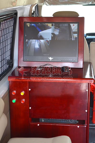 司機(jī)后側(cè),上部噴塑,紅色實(shí)木控制臺(tái) |